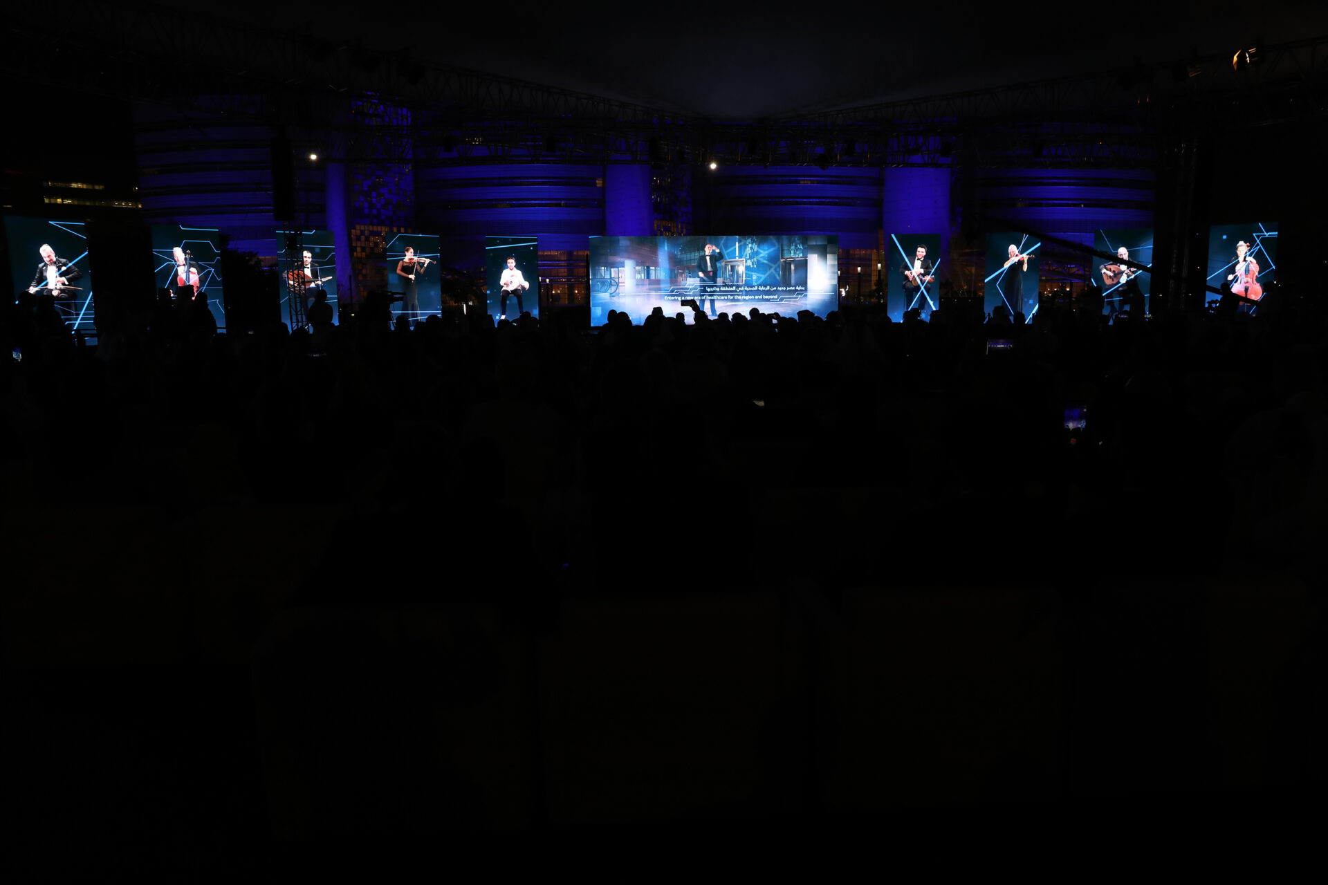 Key elements of the creative development to deliver a spectacular experience were a bespoke shaded outdoor venue with an immersive view of the building, a content production combining multiple LED screens with a synchronized illumination of the façade and the specially composed Sidra Symphony connecting program, content and guest experience.