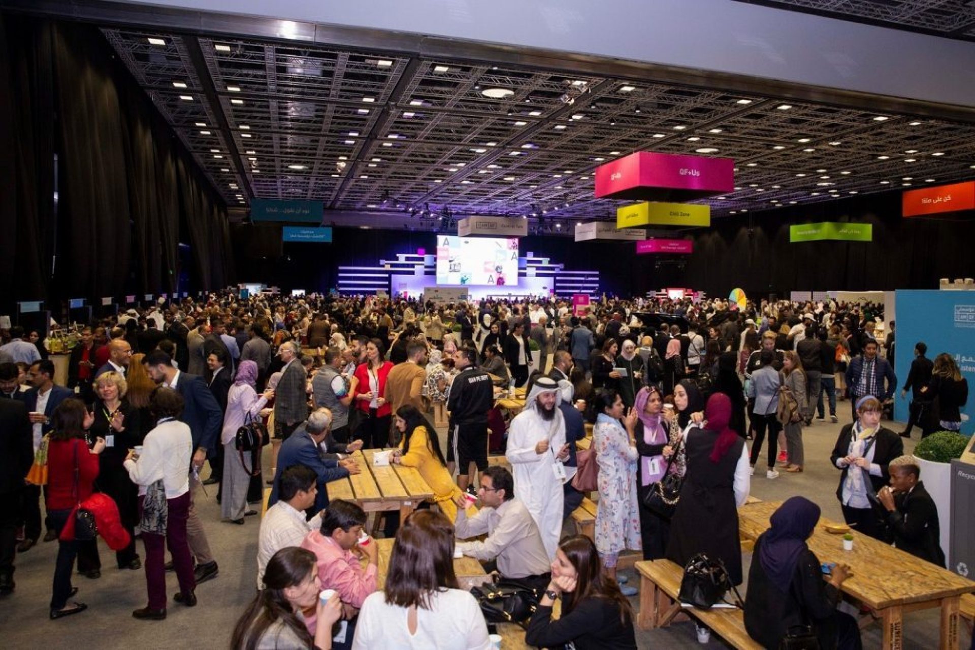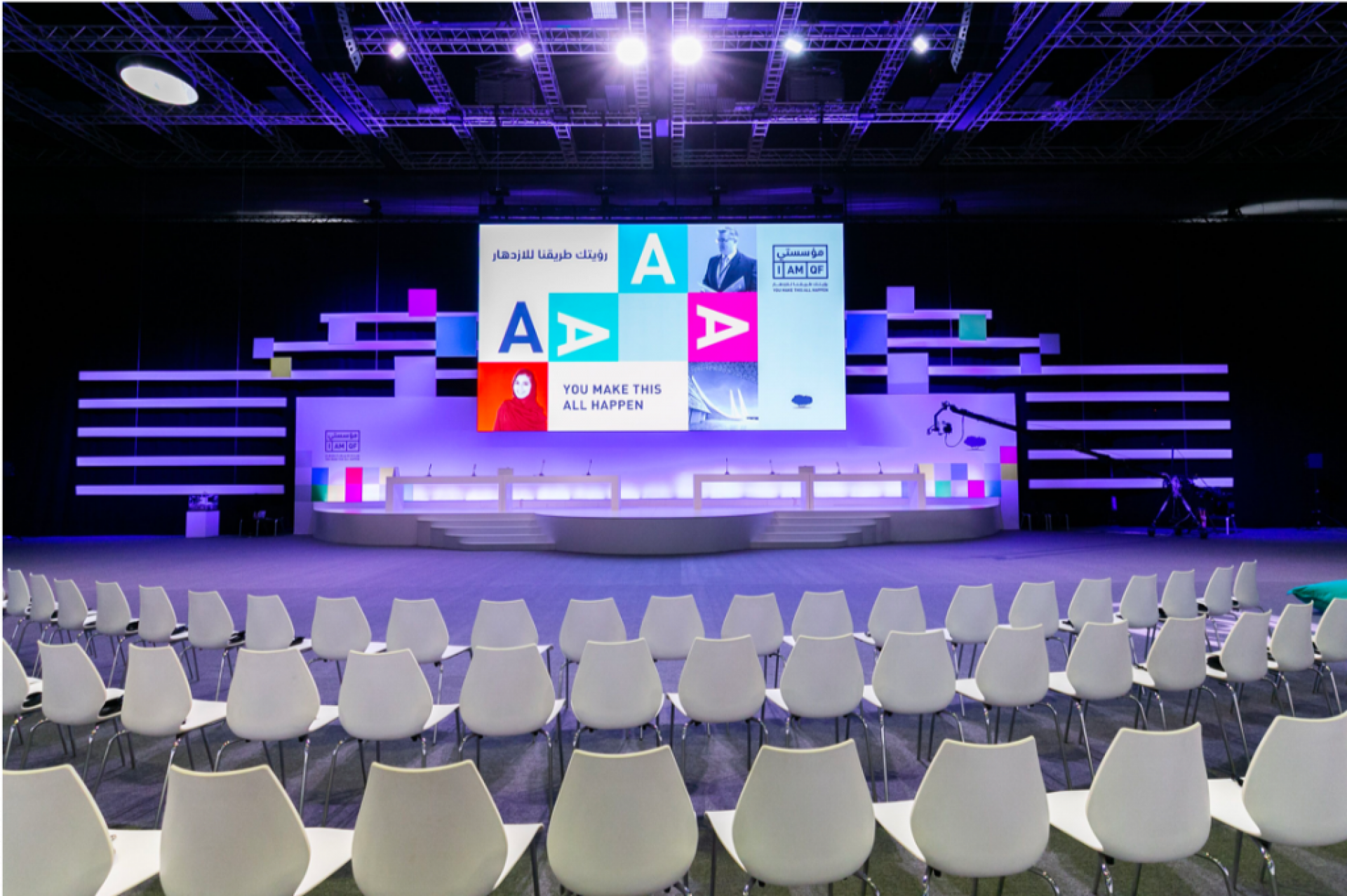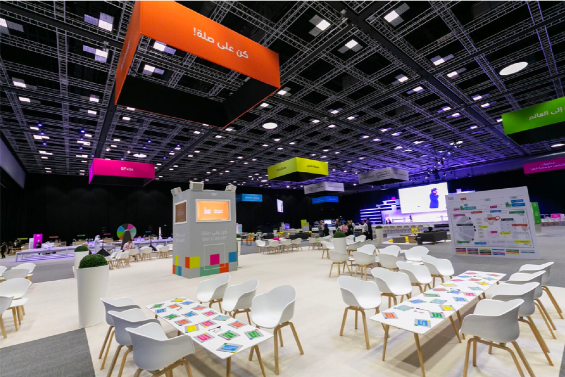 The event setup was set at the Qatar National Convention Center (QNCC) to maximize utilization of capacity and activation spaces. Divided into several zones and distinct, yet connected spaces, I AM QF included a series of highly engaging and dynamic activations, talks along with various areas designed for interactive engagement for the participants, such as:
